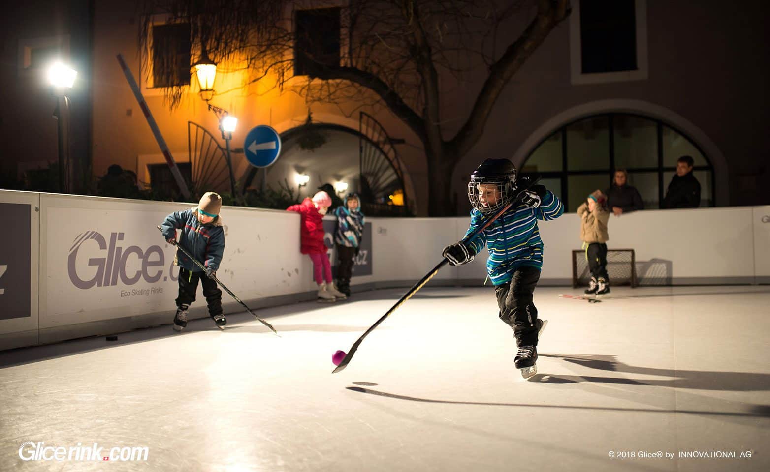 Glice® bietet jeglichen von Ihnen gewünschten Personalisierungsgrad. Von der reinen Glice® Oberfläche bis hin zu einem komplett ausgestatteten kommerziellen Eisbahnpaket mit Banden, Schlittschuhen, Reinigungs-, Schärfungsmaschinen und mehr.